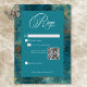 Gothic Antique Aquamarin Gold Damask QR Code Weddi RSVP Karte