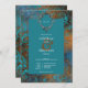 Gothic Antique Aquamarin Gold Damask Zwei-seitige Einladung