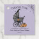 Personalisiertes "Danke" Halloween/Herbst Baby Duwer Gunst-Tag mit handgezeichnet Babywagen, Krähen und Kürbissen auf pastellfarbenem lila Hintergrund. Ideal für die Dekoration von Kostümen und Taschen. Klicken Sie einfach auf "Personalisieren Sie diese Vorlage", um Ihre Dankeschön-Nachricht, den Namen und das Veranstaltungsdatum einzufügen.