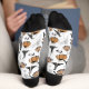 Diese künstlerischen und eleganten Halloween-Socken sind mit handgezeichnet Illustrationen in schwarzer Tinte von Nathalie Portet geschmückt. Vor einem schönen, weißen Hintergrund zieren Bilder von Viktorianischen Babywagen, Hexenhüten, schwarzen Krähen, Kürbissen, Spinnweben, Kaulquappen und winzigen, gesprenkelten Pilzen diese Crew-Socken. Ideal zu Halloween Geburtstage, New Mother, etc.