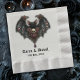 Gotisches Bat Hochzeitstisch Napkins. © Dunkles Herz Wünsche. Dieses Set von 50 Servietten hat das gotische Fledermausdesign. Die Namen und das Datum sind vollständig an den Anzug Ihrer Veranstaltung angepasst.