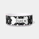 Entdecken Sie unsere auffällige schwarz-weiße Schädel und Knochen gotische Haustierschüssel. Ideal für Ihr Heavy-Metal-Tier mit einem schwarzen Lederkragen.