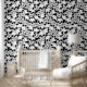 Gotische Tapete mit gruseligen, weißen Skelettblättern auf schwarz. Ideal, um während der Halloween-Saison eine Spielwand zu dekorieren