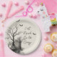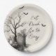 Diese gotische Halloween-Party-Platte zeigt eine Vintage Darstellung eines nackten Baumes, Grabsteins und fliegender Fledermäuse, gepaart mit dem sprichwörtlichen Satz "Essen, Trinken & Be Beängstigend". Der monochrome Effekt verleiht ihm ein zeitloses, Spuk Gefühl, das ihn ideal für lustige Halloween-Tischumhängen macht. Eine stilvolle Wahl, um Vorspeisen, Desserts oder Themengetränke zum Halloween-Party eines Erwachsenen, Spuk Abendessen oder Gotische Cocktail Party zu genießen.