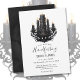 Mit dieser einzigartigen gotischen Black Fantasy Candles Handfasting Einladung mit einer hübschen Anordnung schwarzer Kerzen in einem antiken Kronleuchter lassen Sie Ihre Fantasie zum Leben erwecken und laden zu einem unvergesslichen Erlebnis ein.