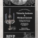 Dunkle und launische gotische Hochzeitseinladungen. All dies in einer Einladung, die mit einer UAWG-Postkarte, die Ihre Gäste abreißen und schicken. Ein Foto der Braut und des Bräutigams, schwarze Rose, Kronleuchter, schwarz-weiße Kerzen. Vielleicht will man, das Foto horizontal zu schneiden, sodass es leicht in das Oval passt. Foto wird automatisch in Schwarz und Weiß geändert. Umschläge werden nicht benötigt. Wunderbar für Goth, Halloween, Magic, Mystische Hochzeit!