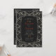 Diese 5" x 7" Hochzeitseinladungen weisen einen gotischen Stil auf, mit schwarzen und knochen Imitaten, die verwittertes Papier und rote Rosen mit der Einführung "Gemeinsam mit ihren Familien, bitte mitmachen", zusammen mit den Platzhaltern für die Vornamen, Datum, Uhrzeit, Veranstaltungsort, Adresse des Veranstaltungsortes und der Nachricht unten, "Empfang zu folgen".