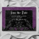 Transport Ihre Gäste in eine Welt der dunklen, bezaubernden Eleganz mit unserer Vintagen gotischen Hochzeit speichern Sie die Dattelkarte. Der lila Hintergrund im tiefen, gealterten Hintergrund Set die Bühne für einen auffallenden Kontrast, da fett weißer Text aus komplizierten, schwarzen Textfeldern entsteht. Drei-dimensionale gotische Elemente schmücken das Design und erfassen das Wesen von Geheimnis und Romantik. Entfesseln Sie den Zauber und Set für einen unvergesslichen Hochzeitstag. Erstellt von der einfachen Farmhouse Press.