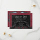 Transport your guests to a world of dark, enchanting elegance with our vintage gothic wedding save the date card. The deep, aged burgundy wine background sets the stage for a striking contrast, as bold white text emerges from intricate black text boxes. Three-dimensional gothic elements adorn the design, capturing the essence of mystery and romance. Your favorite photo fills the back, enshrouded in a black heart of twisting vines and black roses. Unleash the magic and set the tone for an unforgettable wedding day. Created by Simply Farmhouse Press.