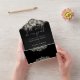 Das Ganze in einer gotischen Hochzeitseinladung mit schwarz-weißen Rosenfloralen und Lichtern, die über elegante Typografie fallen. Die Einladung enthält eine perforierte RSVP-Karte, die Ihren QR-Code für Ihre Hochzeitswebsite und Details enthält. Entwickelt von Thisisnotme©