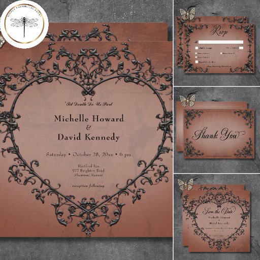 Gothic Black & Rust Filigree Heart WeddingDesignt von Kathe Santillo