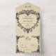Gothic Black Tan Parchment Filigree Heart Wedding All In One Einladung