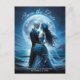 This elegant gothic wedding save the date announcement postcard features a skeleton couple wearing blue wedding attire in a romantic setting with the moon and ocean behind . The back of the postcard has the image of the faded skeleton couple and your wedding details. Imagegenerated with AI.