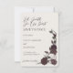 This Gothic Bone and Burgundy Til Death Save the Date features dramatic dramatic hand-drawn skulls and roses in deep burgundy and antique mauve. The original ink-work corner designs pop against a bone white background to create a refined dark romance aesthetic.