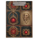 Rote Juwelen in Gold auf schwarzem Hintergrund, mit einem goldfarbenen Schädel, schaffen eine schöne Zwischenablage, die an ein altes, gotisches Buchcover erinnert.