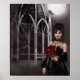 Wunderschön Gotisches stimmungsvolles Fantasy Art Poster mit einer schönen Gothebride in schwarzen Holding-rote Rosen gekleidet. Sie steht vor einem spukhaften, gedeckten Gothic-Gazebo mit Spinnweben. Ein cooles, trendiges und stilvolles Geschenk für Gothemänninnen und Gourmets. Wählen Sie die Größe Ihres Posters und die Art des Papiers, auf dem es gedruckt ist. Aus herrlich gotischen Designs.