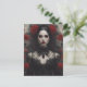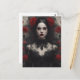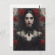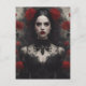 Eine gotische Braut in ihrem schwarzen Hochzeitskleid, umgeben von rote Rosen, ist für ihre Halloween-Hochzeit bereit. Kunst der AI