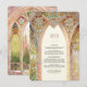 Set the tone for a grand celebration with this Gothic Cathedral-inspired wedding details card, featuring stunning stained glass windows in vivid hues of green, gold, and red. The intricate architectural arches and vibrant floral motifs reflect timeless elegance and spirituality, ideal for church weddings or vintage-themed ceremonies. The serene countryside view adds a romantic touch, while the back showcases a harmonious continuation of the stained glass design. This card combines artistry and sophistication, creating an unforgettable keepsake for your wedding day.
