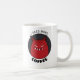 Gotische Kaffee-Tasse mit einer coolen Abbildung eines lustigen bösen Monsters mit scharfen Zähnen und Haaren, die aus den Ohren grinsen, in rot und grau, und dem Text, den ich brauche mehr Kaffee. Diese böse Monster-Tasse wird jemanden ansprechen, der böse Charaktere, Cartoon und gotischen Stil mag.