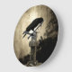 Vintage braune Wanduhr von Krähen auf einem gotischen Kreuz.