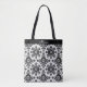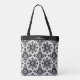 Ein Vintag-weißes, schwarz-weißes Damast-Muster bedeckt diesen eleganten Totbeutel, der einen unverwechselbaren Goth-Look aufweist.