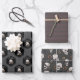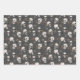 Maßgeschneiderte, handgezeichnet, edle, gotische Packpapiere in dunkelgrau. Blatt #1: Enthält einen gotischen schwarzen Rahmen mit bearbeitbarem Text und eigenem Familiennamen. Alles vor einem dunkelgrauen Hintergrund, bedeckt mit Spinnennetzen. Blatt 2: Das elegante, gestreifte dunkelgraue und pflaumenförmige Muster. Blatt Nr. 3: Ein wunderschönes Skull- und Rose-Muster in Schwarz, Vintager Rose und Cremes, alles vor dunkelgrauem Hintergrund.