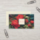 Make a bold, dramatic statement with this gothic fairytale business card. This richly illustrated design features an abundant, lush garden in a distinctive vintage botanical illustration style. Dominant ruby red peonies and roses burst forth from a backdrop of dark, verdant foliage in deep teal and forest green, creating a moody and opulent visual. Scattered smaller red flowers and white blossoms add intricate detail to this enchanted garden scene. A crisp, elegant cream square frame with a fine dark border is perfectly centered, providing a sophisticated focal point for your branding. This artistic and dramatic design is perfect for botanical artists, garden designers, event planners specializing in dark romance or forest themes, or luxury florists with an appreciation for classic aesthetics. It is also an excellent choice for boutique owners, artisan crafters, or vintage-inspired brands seeking a unique and memorable presentation. This elegant design is also perfectly suited for use as a creative thank you card, loyalty card, boutique price tag, or a mini-invitation for any special event.