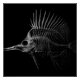 This striking, minimalist design features the intricate skeleton of a fish, rendered in a white, x-ray or halftone style against a solid black background. Evoking a "cabinet of curiosities" or dark academia aesthetic, this piece is perfect for marine biology enthusiasts, divers, or anyone who loves gothic nautical art. The scientific, anatomical detail makes it a sophisticated and moody statement piece for dark decor themes or minimalist apparel.