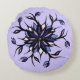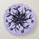 Gotisches Blumenkissen mit cooler, bizarre Mandala-Illustration - digital gefärbte Tinte zeichnend von einer seltsamen Blume mit Reptilmonstern mit scharfen Zähnen in Schwarz, Violett und Blau.
