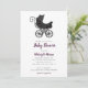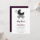 Diese Vintage Buggy mit Blume, Weinreben und für eine schöne Touch ein paar Dornen! Gotische Typografie und launische Purples tragen zum dunklen Gefühl dieser Baby-Dusche-Einladung bei. Schauen Sie sich auch unsere Koordinierungsaufgaben an.