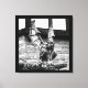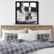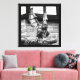 Die gotische Gargoyle-Statue steht vor der Tür eines historischen Strandes. Das auffallende Schwarz-Weiß-Foto verleiht der Wohngestaltung einen auffallenden Akzent.
