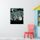 Gotisches Friedhofposter. Cooles Poster mit Friedhof. Spottige Bäume, Gräber, Kreuze, der Halbmond und Wolken über ihnen auf grauem Hintergrund bilden dieses Bild eines Friedhofs.