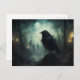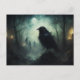 Treten Sie ein in die mystische Welt dieser unheimlichen Wald-Rabe-Illustration, in der sich ein einziger schwarzer Rabe inmitten eines nebeligen, schattigen Waldes erhebt. Die Szene wird durch flackernde Fackeln beleuchtet, die ein rauschendes Glühen über die Bäume werfen, während geheimnisvolle Gesteinsfiguren im Hintergrund lauern. Dieses Kunstwerk erfasst das Wesen der gotischen Fantasie und übernatürlichen Intrigen und macht es perfekt für diejenigen, die dunkle Themen und den Reiz des Unbekannten schätzen.
