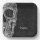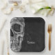 Gotische Macabre coole Grunge Textur schwarz-weiß bedruckt Halbkopf Quadrat Papier Teller. Spooky, gruselig, böse, finster. Individuell, trendig, einzigartig, modern, beängstigend im Stil des Halloween-Party. Bildrecht Marg Seregelyi Fotografie.