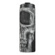 Dieser gotische Thermaltumbler verfügt über eine makabre schwarz-weiße Grunge-Textur bedruckt Halbschädel Kopfdesign. Creepisch, böse, spöttisch, finster, trendiger, cooler Trinkbehälter. Einzigartiges, modernes, beängstigendes Halloween-Design. Bildrecht Marg Seregelyi Fotografie.