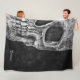 Cool gotische makabre schwarz-weiße Grunge Textur Druck halb Schädel große Fleece Decke. Spooky, gruselig, böse, finstere Wohngestaltung. Personalisieren Sie die Typografie. Trendy, einzigartig, modern, beängstigendes Halloween-inspiriertes Design. Bildrecht Marg Seregelyi Fotografie.