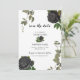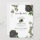 Ein gotisches Halloween-Drehbuch Hochzeitsdesign mit schwarzen Rose und hängenden Weinreben. Ein weißes Halloween-Design, das schwarze und dunkle botanische Blumen und Vintage Schriftzeichen-Kalligraphie-Typografie verwendet. Ein stilvolles Gotisches Design, ideal für Halloween Hochzeitsthemen. Eine einzigartige Schwarze Rose Hochzeit speichern das Datum Design. Auch die passenden Hochzeitseinladungen und andere Schreibwaren sind verfügbar.
