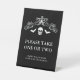 Ein personalisierbares Halloween-Bonbons-Schild, ideal für lass Trick oder Wächter wissen, dass sie eine oder zwei Leckereien nehmen können. Das Design zeigt Desteis Halloween-Abbildung einer Silhouette von Schädel und Fledermäusen, zusammen mit einem dekorativen blüh-Rahmen oben. Es gibt auch einen personalisierbaren Textbereich, um glückliches Halloween zusammen mit einem Namen zu wünschen. Die schwarze Hintergrundfarbe kann auf Wunsch in jede andere Farbe geändert werden.