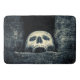 Große Grundidee eines Mockup eines menschlichen Schädels in einem Heidenschrein. Stattdessen eine gotische und beängstigende Aussicht. Schwarzer oder dunkler Hintergrund. Individuell anpassbare Badmatte. Sie können das Bild ändern. Halloween Horror druckt und gift. Pflege sie alle.