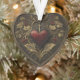 Ein gotisches Weihnachtsschmuck mit einem roten Herz. Zweiseitig mit identischem Bild auf beiden Seiten.