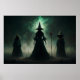 Treten Sie ein in eine Welt der dunklen Verzauberung mit dieser rätselhaften Hexentrio-Illustration. Dieses Kunstwerk besticht durch drei geheimnisvolle Hexen, die mit aufwändigen mittelalterlichen Roben und mächtigen Hüten verkleidet sind und eine Aura des arkanen Powers ausstrahlen. Dieser gotische Fantasy-Kunstdruck eignet sich perfekt für Fans von Hexenkunst, dunkler magischer Ästhetik und mystischer Dekoration.