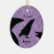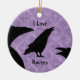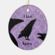 3 raven Silhouetten in schwarz auf einem lila goten Damast-Hintergrund und bedruckt auf einem anpassbaren Ornament, das "I Liebe ravens" lautet. Die Formulierung kann leicht entfernt oder geändert werden.