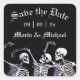 Gothic Lila Dancing Skelette Save the Date Quadratischer Aufkleber