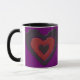 Diese stilvolle Tasse zeichnet sich durch ein wunderschönes Digitalbild eines gotischen Schwarz-Rot-Herzens aus, mit geröteten Kanten, die mit einem ätherischen Licht glänzen und schmelzen. Der Hintergrund ist lila.