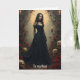 Ein Vollmond scheint hinter einer schwarzen Frau zu glänzen, während sie zwischen Schädeln, Blume und Kerzen steht. Eine schöne gotische Geburtstagskarte für eine Tante oder irgendjemanden; der Text auf der Vorderseite kann geändert oder weggelassen werden.