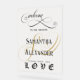 Wählen Sie dieses gepflegte und elegante "Gothic Nothing Extravagant Just Liebe Wedding Welcome Acrylic Sign" mit einer prächtigen Schriftzeichen-Kalligrafie für Ihre gotische Hochzeit. Das Design ist auf einem Imitat mattierten Glasuntergrund mit Imitaten goldenen Folie auf den Ampersand. Der Effekt der Goldfolie entstand durch das Scannen eines mit Goldfarbe bemalten Stoffes mit einer schönen und Vintagen Textur. Fügen Sie Ihre Daten hinzu, und bestellen Sie Ihre Einladungen und alle koordinierten Vorräte für Ihre Veranstaltung jetzt. Wenn Sie Hilfe benötigen, Wünsche für zusätzliche Anpassungen oder passende Produkte haben oder Fragen und Anregungen haben, dann nehmen Sie bitte Touch. Ich weiß Ihr Feedback zu schätzen und werde wieder zu Ihnen kommen!