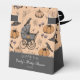 Personalisierte "Danke" Halloween/Herbst Baby Duschbox mit handgezeichnet Babywagen, schwarzen Krähen, Hexenhüten, Kürbissen, Spinnweben und kleinen Pilzen auf elegantem, orangefarbenem Hintergrund. Auf Vorder- und Rückseite gedruckt. Klicken Sie einfach auf "Diese Vorlage personalisieren", um Ihr eigenes Ereignis und Datum einzufügen.