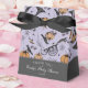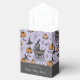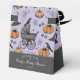 Personalisierte "Danke" Halloween/Herbst Baby Duschbox mit handgezeichnet Babywagen, schwarzen Krähen, Hexenhüten, Kürbissen, Spinnweben und kleinen Pilzen auf elegantem lila Hintergrund. Auf Vorder- und Rückseite gedruckt. Klicken Sie einfach auf "Diese Vorlage personalisieren", um Ihr eigenes Ereignis und Datum einzufügen.