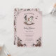 Dieses gotische Rockpferd Rock a Bye Baby Shower Invitation bietet handgezeichnet Illustrationen eines Viktorianischen Holzrockpferdes, schwarzer Rabe, Rose, Wildblumen, Blattwerk, Spinnennetze und fliegende Fledermäuse, alle auf einem eleganten, rosa Hintergrund. Die Rückseite weist ein elegantes Muster mit diesen gleichen Elementen auf. Alle Texte können bearbeitet werden.