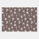 Maßgeschneiderte, handgezeichnet, edle, gotische Verpackungsblätter in Pflaume lila. Blatt #1: Enthält einen gotischen schwarzen Rahmen mit bearbeitbarem Text und eigenem Familiennamen. Alles vor einem lila Hintergrund, der von Spinnennetzen bedeckt ist. Blatt 2: Das elegante, gestreifte Taupe-Grau- und Pflaumenmuster. Blatt 3: Ein wunderschönes Skull- und Rose-Muster in den roten Farbtönen, Vintager Rose und Cremes, alles vor einem lila Hintergrund.